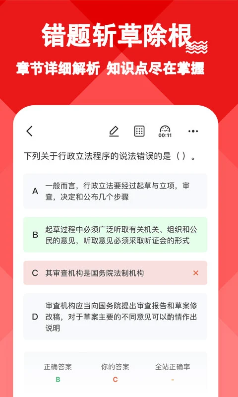 3. 错题集管理:自动记录用户错题,支持错题重做和讲解解析,帮助考生巩固知识点。