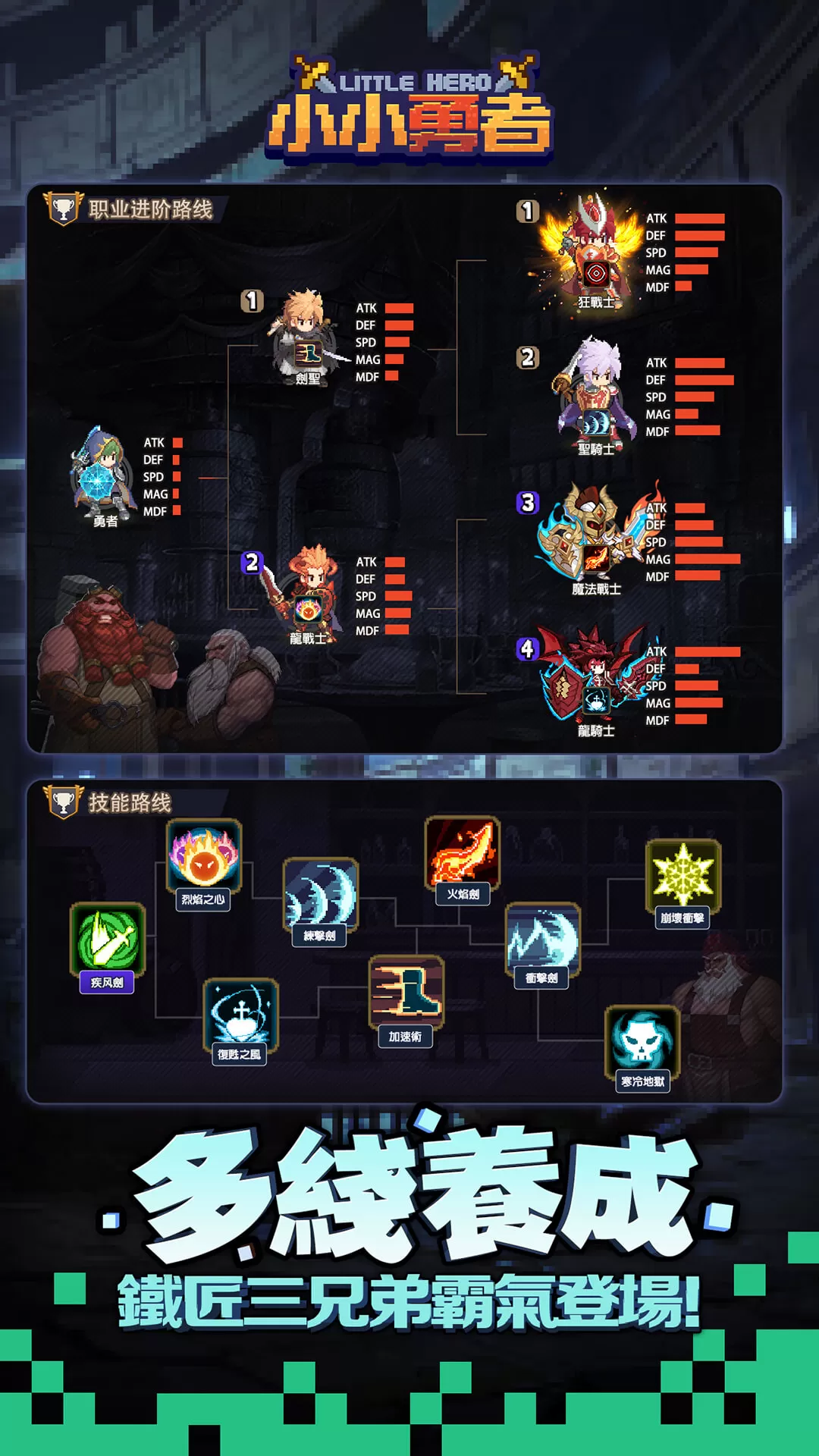 1. 多样化角色选择:玩家可以选择不同职业的小勇者,每个职业拥有独特的技能和战斗风格。
