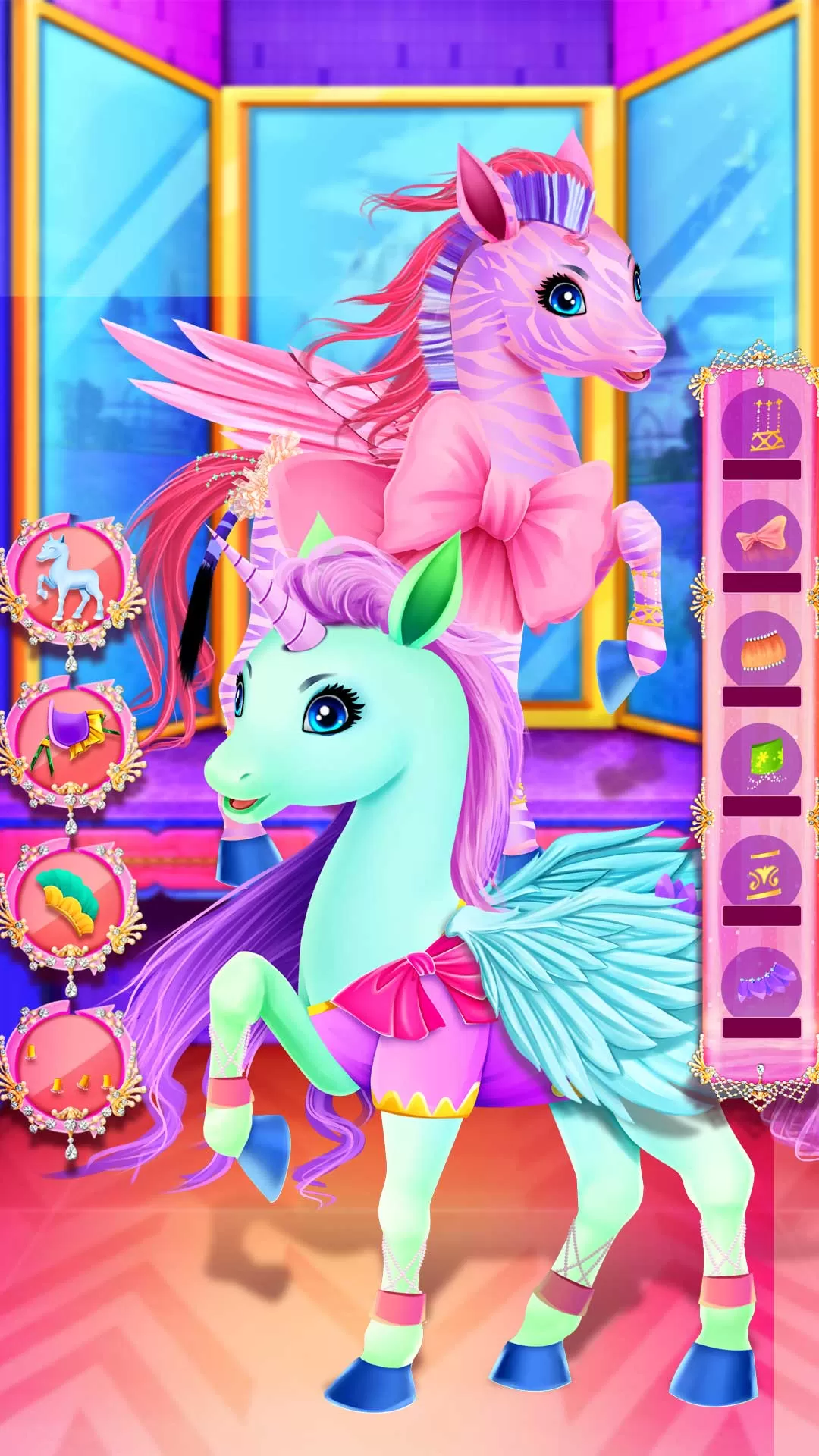 2. 小马装扮功能:为小马选择不同的马鞍、鬃毛造型和饰品。