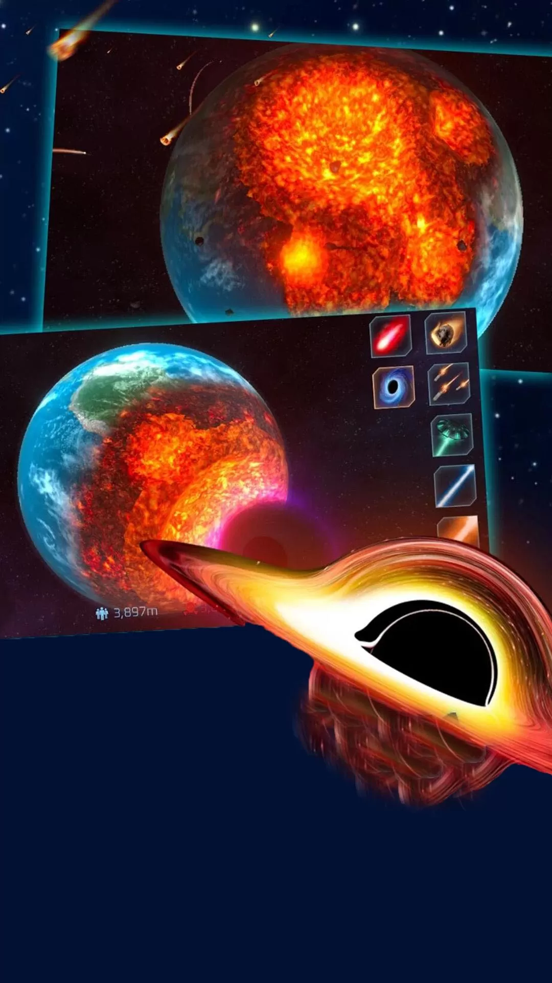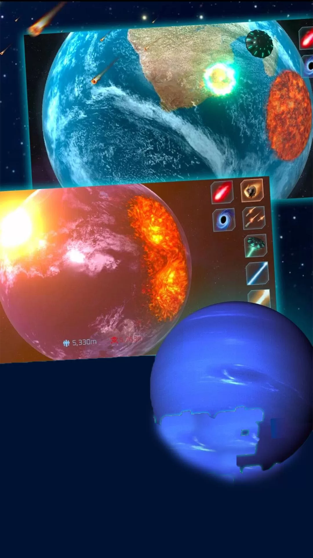 2. 真实物理模拟:精准计算行星的受力和碎裂效果,呈现震撼视觉体验。