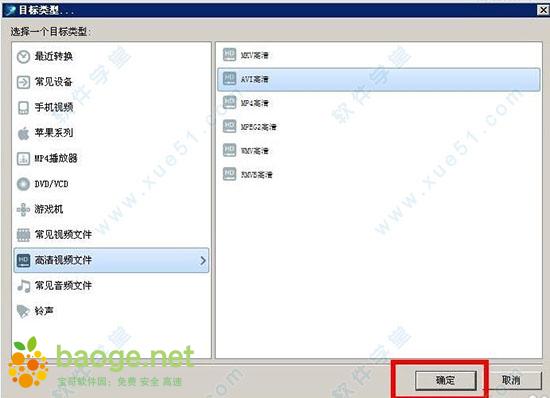 3、点击确定之后,就会弹出下图所示的对话框,我们根据自己需要,选择自己要转换的目标格式;