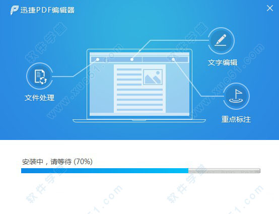 1、到本站下载好迅捷PDF编辑器破解版安装包包,然后双击运行“pdfeditor.exe”程序进行软件原版安装