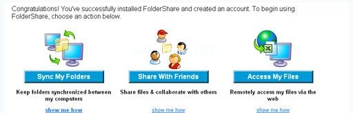 运行foldershare软件将打开一个网页,其中foldershare的三个功能会突出显示: